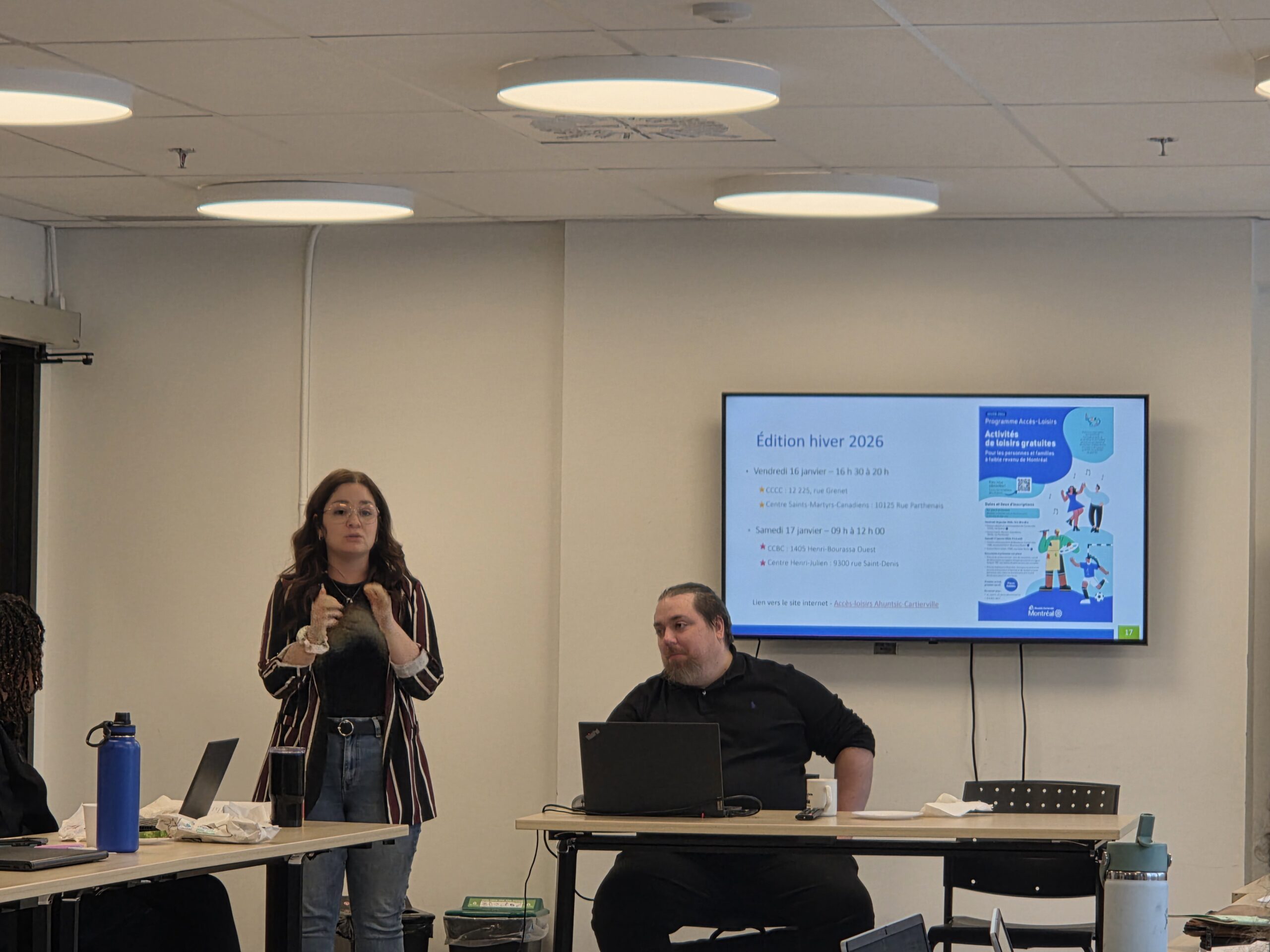 Une équipe de la division sports et loisirs de l’arrondissement a fait une escale au Centre culturel et communautaire de Bordeaux-Cartierville (4C), jeudi 4 décembre, lors de la table de concertation jeunesse du quartier pour annoncer le lancement des activités de son programme accès-loisirs durant cet hiver.